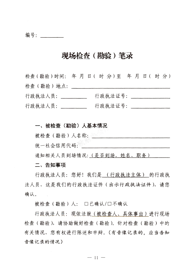 司法部办公厅关于印发《行政检查文书基本格式文本(试行)》的函