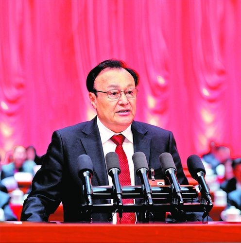 1月6日,雪克来提·扎克尔在自治区十三届人大三次会议上作政府工作报告。□本报全媒体记者崔志坚摄