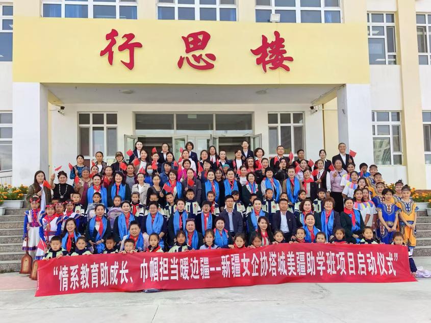 9月8日,在新疆妇联的指导下,塔城地区妇联与和布克赛尔县妇联共同协调推进下,北京市美疆助学基金会、新疆女企业家协会、塔城地区女企业家协会共同在和布克赛尔县第二小学举行该地区首个“美疆班”开班仪式,为该县30名二年级学生提供长期助学支持。这是新疆女企业家协会在全区推动的第二个“美疆班”。