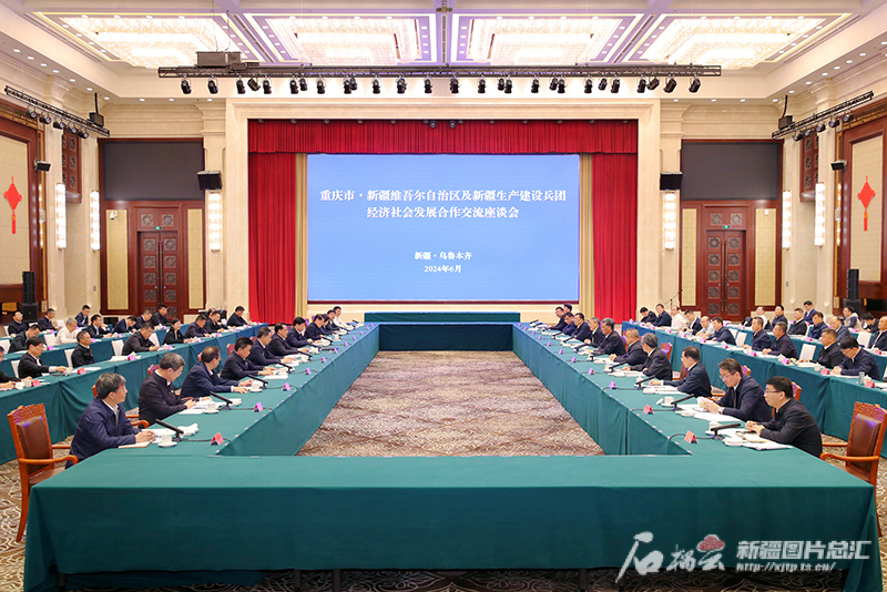 6月4日,重庆市·新疆维吾尔自治区及新疆生产建设兵团经济社会发展合作交流座谈会在乌鲁木齐召开。石榴云/新疆日报记者 崔志坚 摄