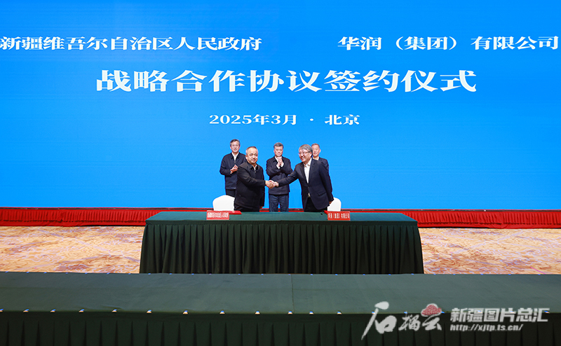 3月12日,在中央企业产业兴疆重点项目2025年投资推进会上,自治区党委副书记、自治区主席艾尔肯·吐尼亚孜与华润集团总经理王崔军签署自治区人民政府与华润集团战略合作协议。天山网-新疆日报记者 崔志坚 摄