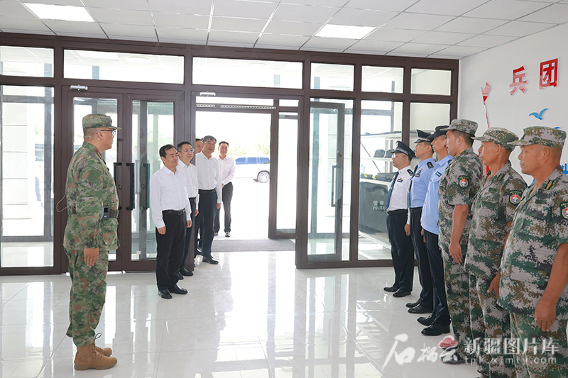 8月5日,自治区党委书记、兵团党委第一书记、第一政委陈小江来到兵团第四师可克达拉市62团边防指挥中心,看望慰问一线执勤人员。石榴云/新疆日报记者 崔志坚 摄