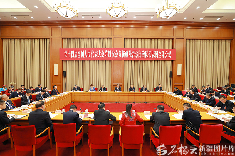 3月5日下午,参加十四届全国人大四次会议的新疆代表团举行全体会议,审议政府工作报告。天山网-新疆日报记者 崔志坚 摄